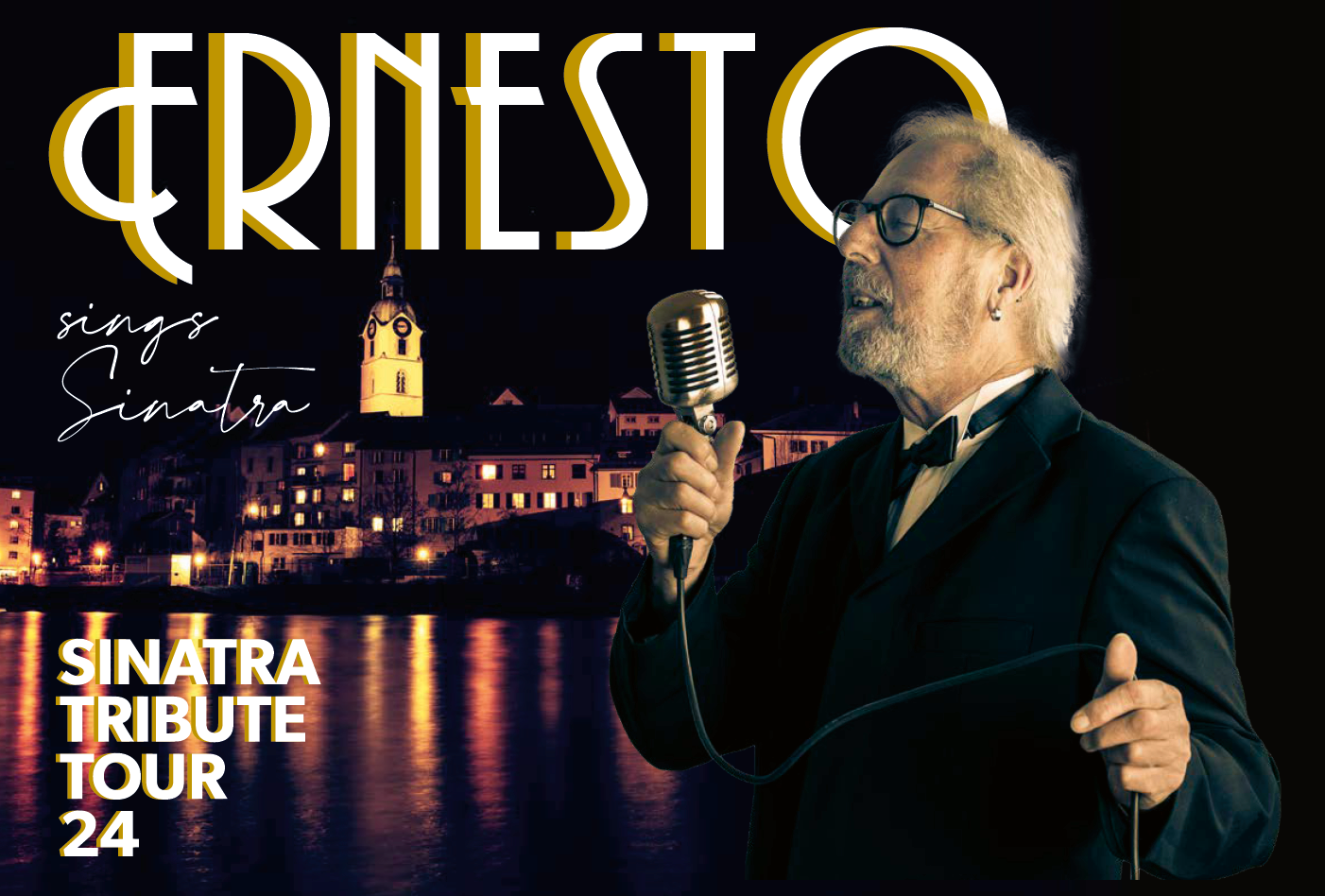 Ernesto und die „Sinatra Tribute Band“ sind seit 2022 auf der Tour und gastieren auch mit dem neuen Programm in der Alten Mühle Attiswil. Im Gepäck 90 Minuten Nostalgie, mit den schönsten Evergreens von Frank Sinatra. Dazu Anekdoten und Geschichten aus dessen Leben.